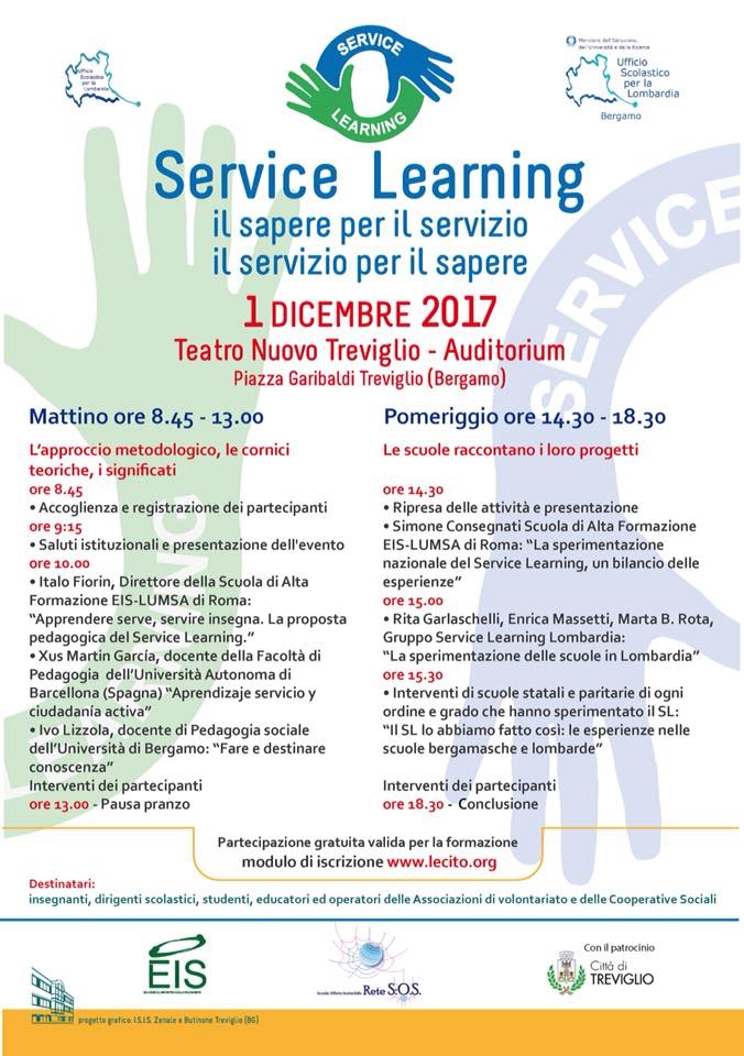 1 dicembre 2017 Convegno SERVICE LEARNING, il sapere per il servizio, il servizio per il sapere.