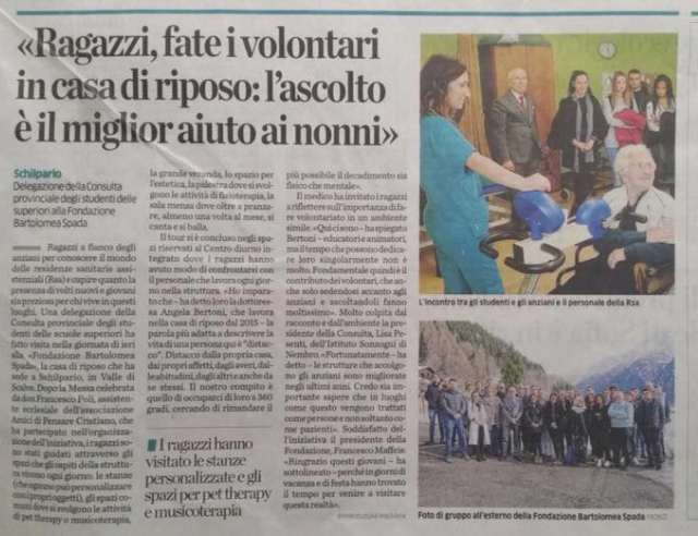 4 gennaio 2018 - I giovani della CPS di Bergamo incontrano gli anziani della casa di riposo di SchilparioArticolo pubblicato il 5 gennaio 2018 da L'Eco di Bergamo